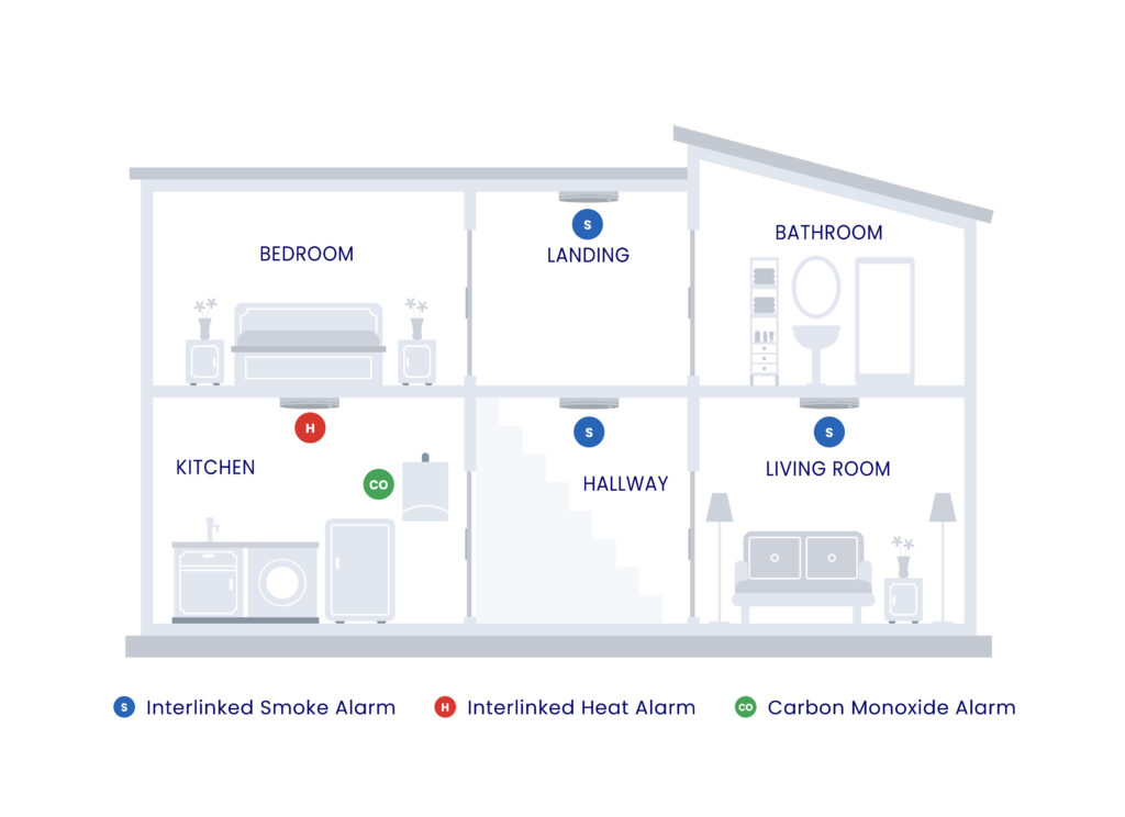 - Interlinked Smoke Alarms in your living room and in any hallway/landing areas.